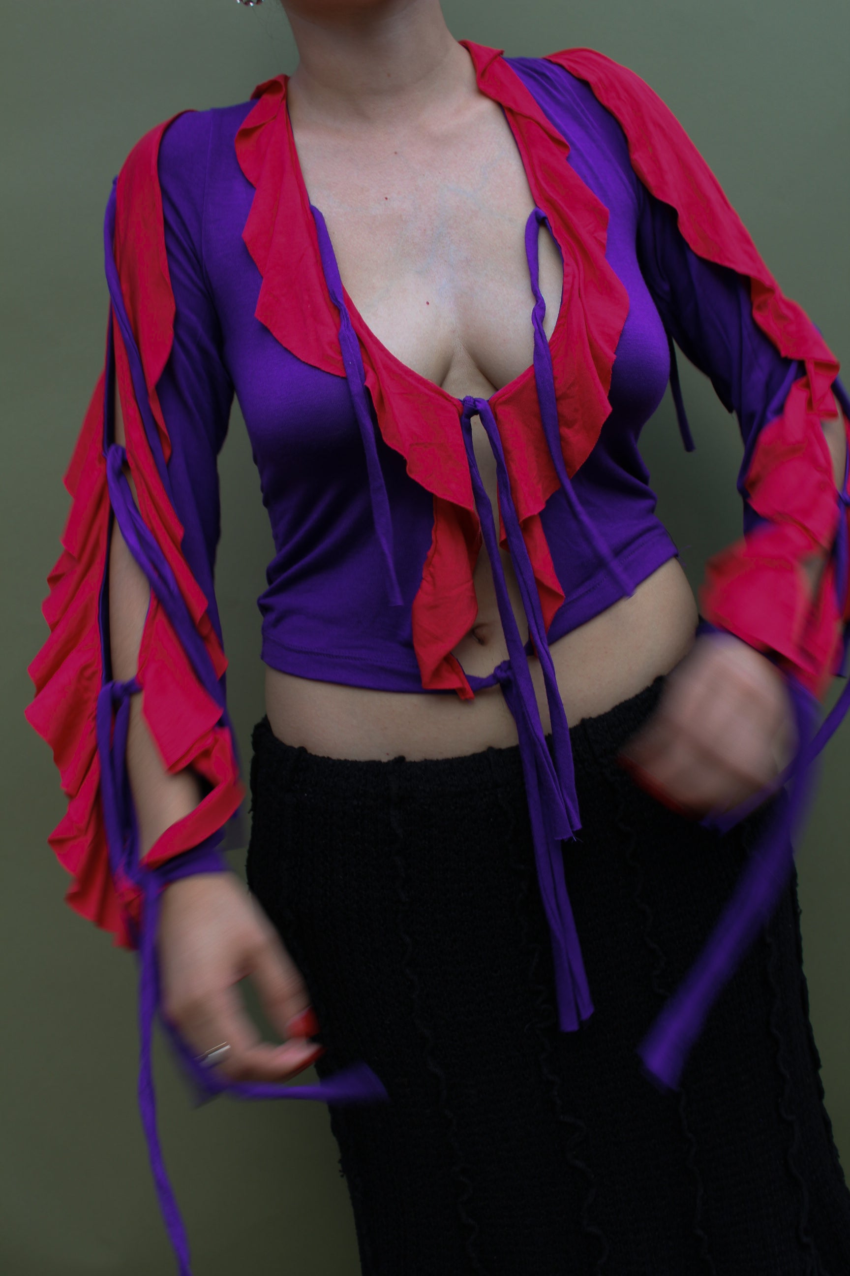 The FOLKLORICO BLOUSE 001 was made to wear and tie as as you see fit, designed to have an airy bounce with each step you take and the versatility to be worn front or back, this blouse can be worn as a layering piece or a statement piece on its own.